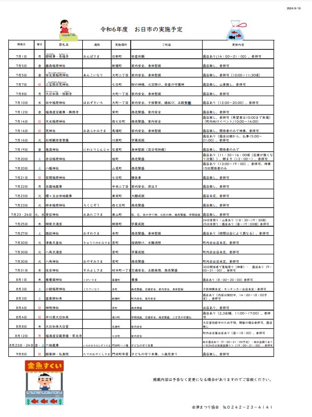 「お日市」は、町内ごとにまつられてきた神社・仏閣などのお祭りで、会津若松市内各地で7月~9月まで開催されます。